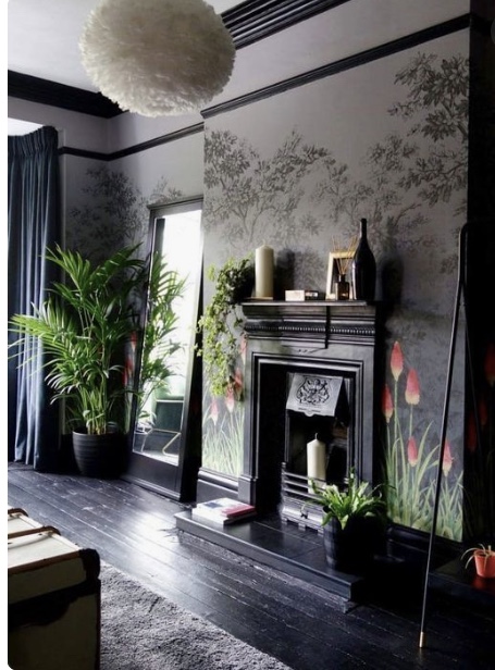 I gushed over this dark & sultry wall with pops of colours